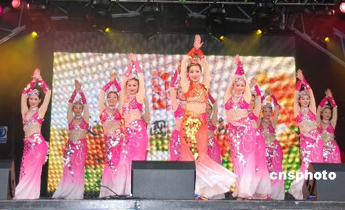 當(dāng)?shù)貢r間2月1日,英國倫敦盛大的中國新年慶典在特拉法加廣場開幕,中國國務(wù)院僑辦組織的“文化中國·四海同春”藝術(shù)家赴現(xiàn)場演出助陣。圖為昆明市民族歌舞劇院正在演出具有少數(shù)民族風(fēng)情的歌舞節(jié)目。