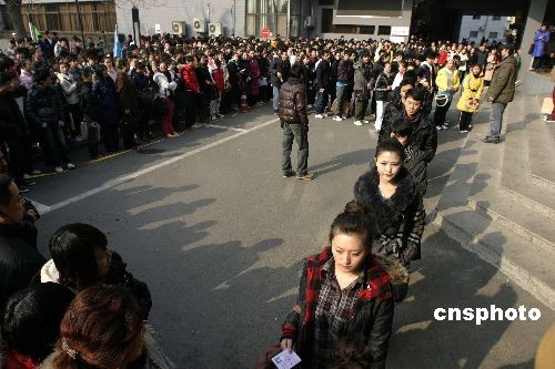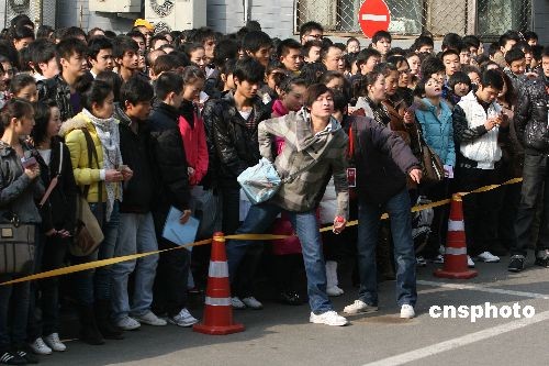 2月6日,最受社會(huì)關(guān)注、也是北京電影學(xué)院競爭最激烈的表演專業(yè)本科招生進(jìn)入初試的第二天。由于2009年北影首次要求考生“素顏”應(yīng)考,因此相比往年,現(xiàn)場濃妝艷抹、染著黃頭發(fā)、奇裝異服的考生并不多,個(gè)別化了淡妝的男女考生被要求先到衛(wèi)生間洗臉后才能進(jìn)考場。據(jù)悉,雖然2009年的招生人數(shù)由往年的30人增加到75人,但面對4234名報(bào)考者,淘汰率仍高達(dá)98.2%。表演專業(yè)初試將持續(xù)4天,2月11日上午公布參加復(fù)試人員的名單。