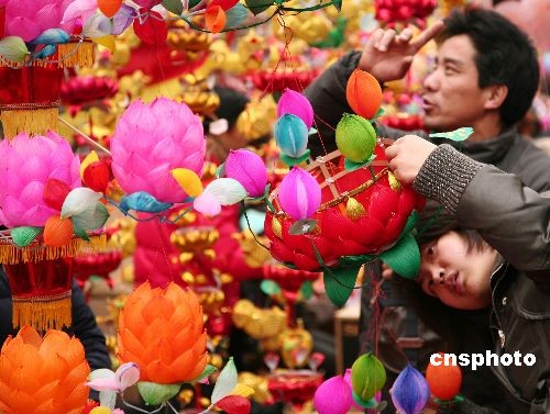 2月7日,市民在燈市上選購(gòu)花燈。當(dāng)日農(nóng)歷正月十三,是一年一度的元宵節(jié)“上燈日”,南京夫子廟花燈市場(chǎng)生意紅火,五彩繽紛、樣式各異的花燈吸引眾市民爭(zhēng)相選購(gòu)。