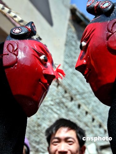 2月12日是農(nóng)歷正月十八,貴州省安順市西秀區(qū)吉昌屯舉辦隆重的“抬汪公”活動,是屯堡村寨每年最隆重的活動之一,四鄉(xiāng)八寨的村民都會來到汪公祠堂燒香拜祖神,祭祀汪公!疤艄笔峭捅と俗孑厒鞒械闹匾⒌洹C磕暾率璩,屯堡人就把紅面長須身穿官袍的“汪公”他老人家從平日香火侍奉的“汪公廟”里請出,端放在一個紅錦緞扎成的轎子里,由全屯最有威望的老人引路,轎前有儀仗隊鳴鑼開道,轎后跟隨高妝彩車、蓮船、地戲隊,前呼后擁,游鄉(xiāng)串寨,熱鬧非凡。中新社發(fā) 彭年 攝