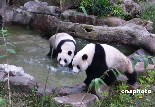 二月十四日,大陸贈(zèng)臺(tái)大熊貓“團(tuán)團(tuán)”和“圓圓”首次在臺(tái)北新家的戶(hù)外展示場(chǎng)與游客見(jiàn)面,再度掀起臺(tái)灣民眾的參觀熱潮。當(dāng)天,“團(tuán)團(tuán)”“圓圓”到戶(hù)外活動(dòng)的興致極好,常在草地上撒歡奔跑,“團(tuán)團(tuán)”樂(lè)山,不時(shí)爬到山坡的最高點(diǎn)俯視全場(chǎng); “圓圓”喜水,不時(shí)走進(jìn)水池戲水玩耍。中新社發(fā) 路梅 攝