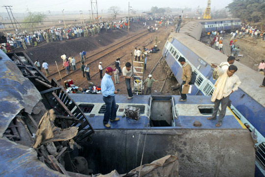 組圖:印度發(fā)生火車脫軌事故致上百人死傷(2)——中新網(wǎng)