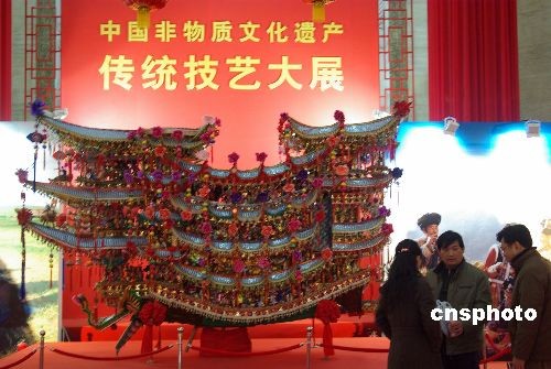 2月17日,在北京舉行的非物質(zhì)文化遺產(chǎn)傳統(tǒng)技藝大展上,上百位民間手工藝人各展絕活兒,引得人們的爭(zhēng)相觀看,并慷慨解囊購(gòu)買手工藝品。此次大展共分為9大單元,分別為剪紙繪畫、印刷裝潢、陶冶燒造、雕鐫塑作、五金鏨鍛、制茶釀造、木作編扎、織染紉繡、傳統(tǒng)醫(yī)藥。