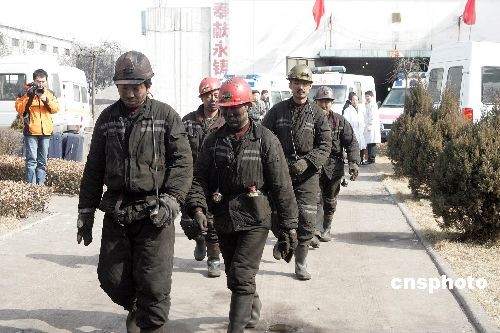 二月二十二日凌晨二時十七分,山西焦煤集團(tuán)西山煤電屯蘭煤礦發(fā)生瓦斯爆炸事故,目前已造成四十四人遇難。圖為已安全升井的礦工。中新社發(fā) 張?jiān)?攝