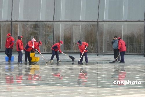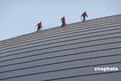 “蜘蛛人”給國家大劇院“洗臉” 喜迎兩會(2)