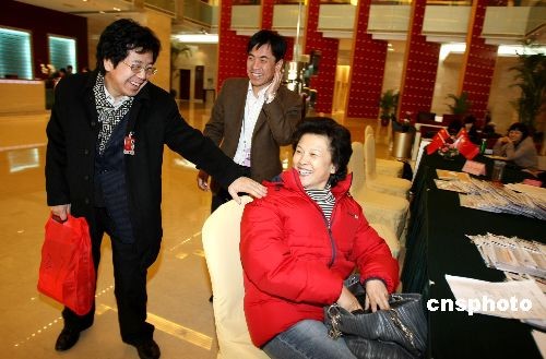 3月2日,參加全國政協(xié)十一屆二次會議的全國政協(xié)委員陸續(xù)向大會報到。圖為著名演員宋春麗在報到處領(lǐng)取會議材料。中新社發(fā) 傅丹丹 攝