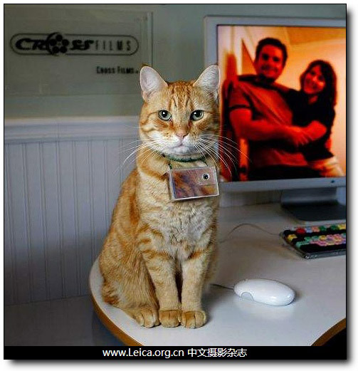 Cooper的主人是一對(duì)開(kāi)畫(huà)廊的小夫妻,相機(jī)自然也是主人為Cooper特別制作的,當(dāng)他戴上相機(jī)后,每2分鐘會(huì)自動(dòng)拍下一張照片,他的第一份作品就是拍了張兩位主人擁抱的照片,你看,他還挺會(huì)拍馬屁的吧?