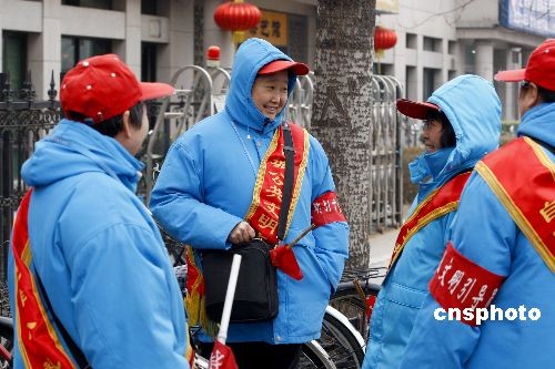 3月3日,全國(guó)政協(xié)十一屆二次會(huì)議在北京人民大會(huì)堂開幕,北京公交車站工作人員統(tǒng)一著裝,以陽(yáng)光的微笑來(lái)服務(wù)到京旅游的乘客和出行的市民。中新社發(fā) 鄭雄增 攝