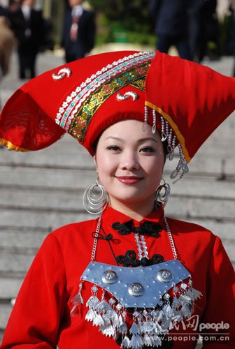 圖:兩會(huì)上美麗的壯族禮儀姑娘(3)——中新網(wǎng)