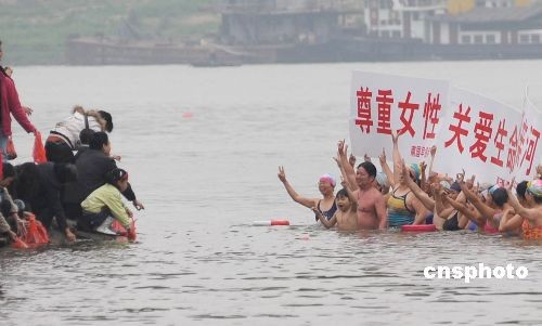 圖:南寧冬泳愛(ài)好者游邕江慶祝三八節(jié)——中新網(wǎng)