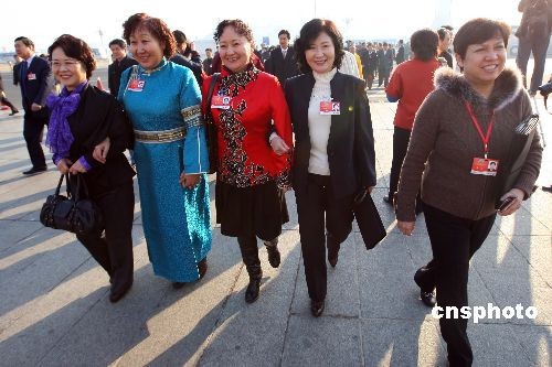 圖:國際婦女節(jié)里女委員微笑入會場——中新網(wǎng)