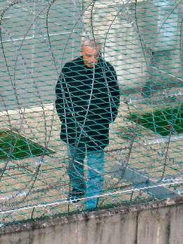 日前,弗萊茨勒在監(jiān)獄里放風(fēng)時的照片被媒體公布,從這組照片中我們看到,弗萊茨勒穿著藍(lán)色的牛仔褲和高領(lǐng)的黑色夾克,頭低垂,眼睛盯著地面,手深深地插在上衣口袋里。他在監(jiān)獄的空場上一個人轉(zhuǎn)著圈子踱步,周圍是數(shù)米高帶著鐵絲網(wǎng)的監(jiān)獄圍墻。