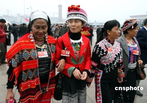圖:少數民族委員盛裝步入大會堂(2)——中新網
