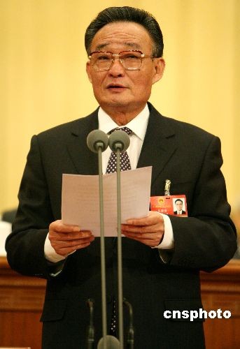 3月13日,第十一屆全國人民代表大會第二次會議在人民大會堂閉幕,全國人大常委會委員長吳邦國主持會議。中新社發(fā) 任晨鳴 攝