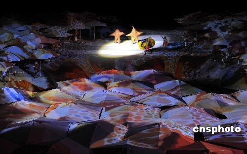 由張藝謀、王潮歌和樊躍“鐵三角導(dǎo)演”共同指導(dǎo)的大型實(shí)景演出——《印象海南島》,于3月16日晚在海南省?谑械挠∠髣(chǎng)首次對(duì)外試演!队∠蟆ずD蠉u》試演近一個(gè)月,再經(jīng)過(guò)修改及完善,于4月中旬舉行的博鰲亞洲論壇期間正式公演!队∠蟆ずD蠉u》演出長(zhǎng)70分鐘,印象劇場(chǎng)可容納1600名觀(guān)眾,230名男女演員平均年齡19歲,都是在海南島經(jīng)過(guò)嚴(yán)格選拔的。