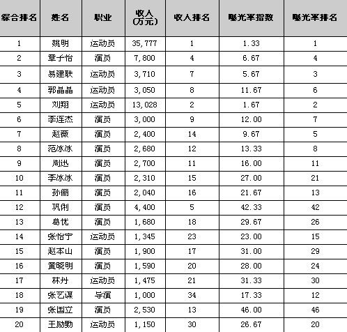福布斯發(fā)布中國(guó)名人榜 (6)——中新網(wǎng)
