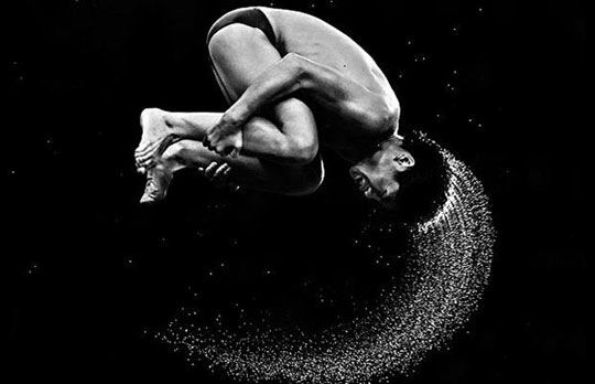 男子10米跳臺(tái)跳水:2008年8月,一名運(yùn)動(dòng)員在北京奧運(yùn)會(huì)上參加男子10米跳臺(tái)跳水。(體育攝影一等獎(jiǎng))