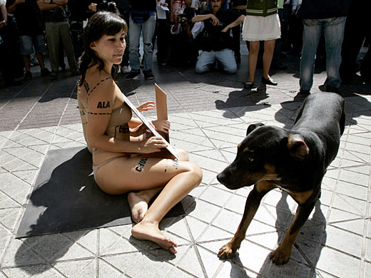 組圖:美女上演"裸身切割" 呼吁保護(hù)動物(2)