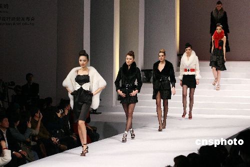 2009年3月24日,中國(guó)國(guó)際時(shí)裝周09/10秋冬系列發(fā)布會(huì)在北京拉開(kāi)帷幕。當(dāng)天舉行了秋冬皮草流行趨勢(shì)發(fā)布會(huì),皮草以性感、高貴、優(yōu)雅、陽(yáng)光的風(fēng)格來(lái)詮釋本季主題,共分為時(shí)尚飛揚(yáng)、舞動(dòng)的裘皮精靈、傳承經(jīng)典、摩登針織四個(gè)系列。中新社發(fā) 魯谷 攝