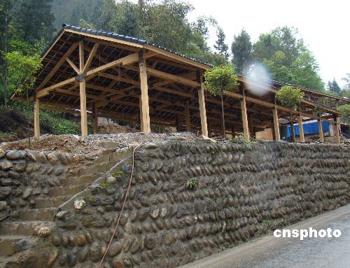 由國務(wù)院僑辦援建的中國第一個(gè)“僑愛家園”本月底將在四川廣元青川縣關(guān)莊、竹園兩鎮(zhèn)建成。約有一百六十戶農(nóng)戶將受益于“僑愛家園”項(xiàng)目,并在建成后搬進(jìn)新居。該項(xiàng)目的最大特點(diǎn)是采用經(jīng)濟(jì)便宜、抗震堅(jiān)固、建造迅速、節(jié)能環(huán)保的現(xiàn)代輕型木結(jié)構(gòu)建筑。圖為在建中的“僑愛家園”農(nóng)房。中新社發(fā) 王萌 攝