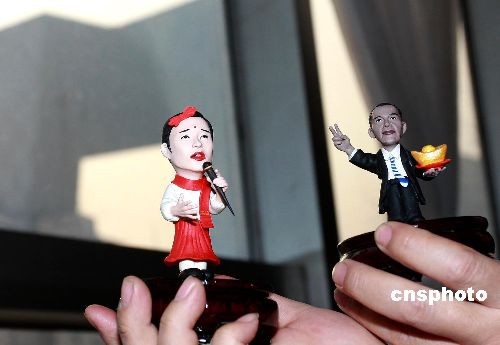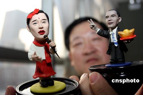 2月8日,北京朝陽區(qū)文化館,非物質(zhì)文化遺產(chǎn)項(xiàng)目傳承人“面人彭”彭小平,展示他精心制作的面人新作品——小沈陽和奧巴馬。當(dāng)日,為迎接正月十五元宵節(jié),朝陽區(qū)文化館舉辦非物質(zhì)文化遺產(chǎn)手工藝作品交流活動,10余位民間藝術(shù)家進(jìn)行現(xiàn)場技藝展示。中新社發(fā) 鄭雄增 攝