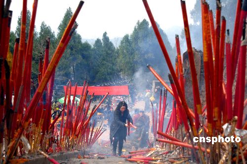 圖:新春佳節(jié)四川民眾爭(zhēng)相登高上香