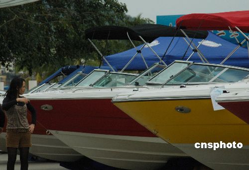 2月8日,游人在三亞鹿回頭廣場(chǎng)參觀豪華游艇。由三亞順業(yè)船舶設(shè)備有限公司和香港游艇廠商聯(lián)合舉辦的2008迎春游艇展覽會(huì)繼續(xù)在海南三亞鹿回頭廣場(chǎng)舉行,這是三亞首次舉行的大規(guī)模游艇展,展覽將持續(xù)到2月14日。所展出的圣斯克、夢(mèng)特威、斯莎等品牌的豪華游艇、摩托艇、快艇以及加拿大龐巴迪品牌旗下的快艇、雪地車、沙灘車等海上運(yùn)動(dòng)休閑娛樂產(chǎn)品,春節(jié)期間吸引諸多三亞市民和游客參觀。中新社發(fā) 尹海明 攝