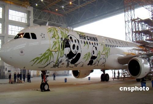 12月25日上午,以水墨畫風(fēng)格噴涂大熊貓母子竹林嬉戲圖案的第二架“秀美四川”號(hào)空客A三二一彩繪飛機(jī)在成都雙流機(jī)場(chǎng)向公眾亮相。據(jù)悉,該機(jī)將于本月二十七日正式投入航班運(yùn)營(yíng),計(jì)劃首班執(zhí)飛成都—上海航班,今后將主要安排執(zhí)飛成都—臺(tái)北航線。中新社發(fā) 王萌 攝