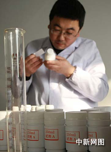 1月9日,檢測液態(tài)奶中是否含有三聚氰胺的化學(xué)法快速檢測試劑盒在蘭州上市。這項技術(shù)由蘭州大學(xué)研發(fā),并于2008年11月7日通過了甘肅省科技廳組織的成果鑒定。生產(chǎn)商甘肅欣慶環(huán)保科技有限責(zé)任公司介紹,這種試劑盒不僅適用于乳品生產(chǎn)企業(yè)、基層奶站、基層質(zhì)檢站等部門,而且可以進入家庭使用。據(jù)悉,日前,國內(nèi)乳品公司已和生產(chǎn)商簽定了多批訂單,部分試劑盒即日發(fā)往省外。