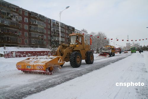 2月3日,新疆阿勒泰市建設局和地區(qū)養(yǎng)路段及時出動大型鏟雪設備清理城市道路。自1月27日以來阿勒泰地區(qū)遭遇持續(xù)降雪天氣。中新社發(fā) 唐曉波 攝