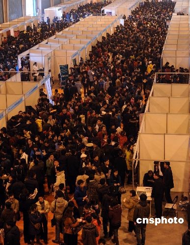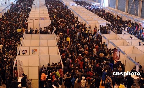 2009年2月6日,2009山東半島城市群春季人才交流暨黃河三角洲開發(fā)人才招聘大會(huì)在山東濰坊舉行,吸引數(shù)萬(wàn)應(yīng)聘者到場(chǎng)。中新社發(fā) 王志德 攝