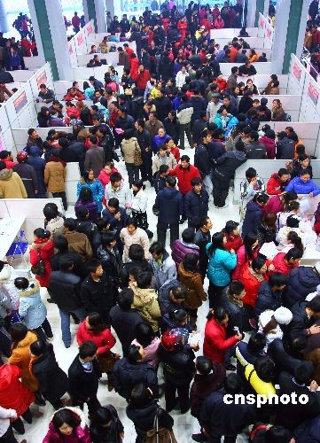 2月6日,江蘇省海安縣舉行“春天的陽光”農(nóng)民工就業(yè)專場招聘會,125家用人單位3600多個崗位,吸引了18000多名農(nóng)民工前來應(yīng)聘。中新社發(fā) 仇穩(wěn)山 攝