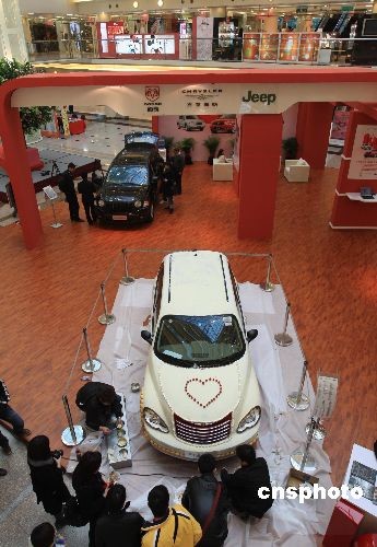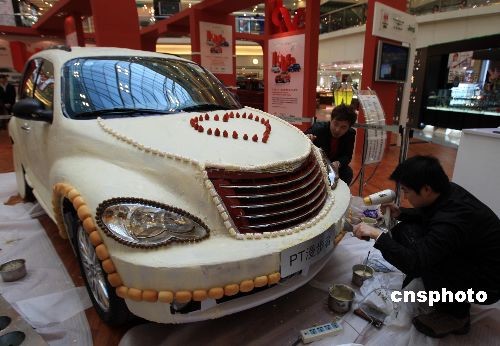2月8日,上海兩位巧克力工藝師用兩天的時(shí)間、超過200公斤白巧克力原料,精心打造一款時(shí)尚酷車,浪漫約會(huì)即將到來的“情人節(jié)”。中新社發(fā) 潘索菲 攝