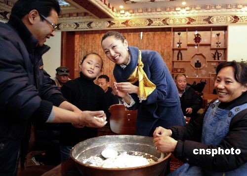 藏歷新年前夕,在中國(guó)國(guó)際航空公司擔(dān)任國(guó)際航線空姐職務(wù)的德慶央宗專(zhuān)程從北京帶著父母趕回拉薩,和親朋好友歡度藏歷新年。德慶央宗的父親曾供職于中國(guó)《民族畫(huà)報(bào)》,母親供職于中國(guó)藏學(xué)研究中心,他們一家已經(jīng)多年沒(méi)有回西藏過(guò)藏歷新年。中新社發(fā) 廖攀 攝