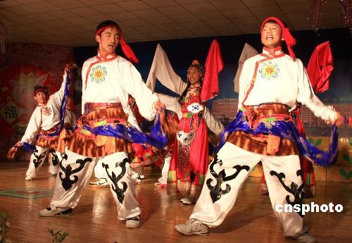 2月24日是藏歷除夕,遼寧省遼陽(yáng)市第一中學(xué)西藏班的700余名學(xué)生在第二故鄉(xiāng)喜迎藏歷土牛新年的到來(lái)。中新社發(fā) 曹精義 攝