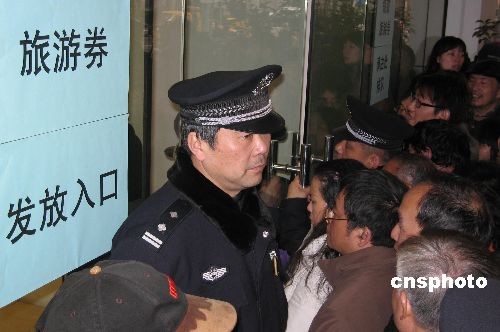 3月1日,杭州旅游部門開始面向上海市民發(fā)放13.5萬份、總面值達(dá)900萬元人民幣的“杭州旅游消費(fèi)券”。在發(fā)放點之一的杭州銀行上海分行營業(yè)部,消費(fèi)券發(fā)放遭到上海市民哄搶,場面一度混亂。為促進(jìn)杭州旅游業(yè)推廣,由杭州市旅委發(fā)行的“消費(fèi)券”可在180家指定景點和商家使用,游客每消費(fèi)40元可抵扣10元,面向廣大市民均可申請領(lǐng)取。此次面向全國統(tǒng)一發(fā)放的杭州旅游消費(fèi)券為240萬套,總額達(dá)到1.5億元。中新社發(fā) 李佳佳 攝