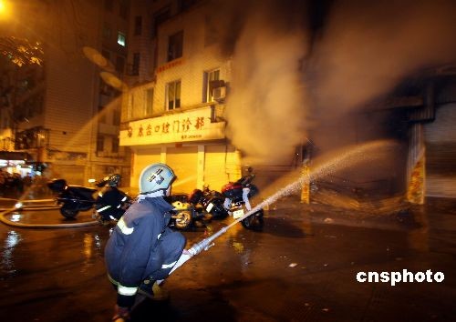 三月四日晚上九時(shí)許,福建省寧德市蕉城區(qū)建新路沿街一幢七層商品房的一層摩托車維修店鋪突然起火,樓上十余戶居民二十人被困,在消防官兵的奮力撲救下,被困群眾全部被安全疏散,火災(zāi)沒有造成人員傷亡。目前,消防部門正在對(duì)火災(zāi)原因進(jìn)行調(diào)查。中新社發(fā) 陳強(qiáng) 攝