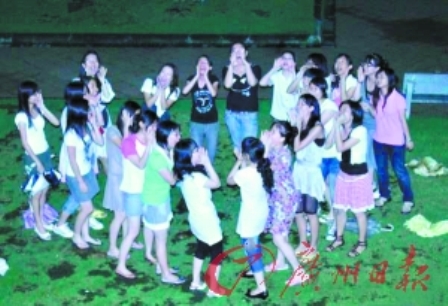 喊樓年年有,今年略不同,原來一向矜持的女生也開始喊起樓來。近日,在華南師范大學(xué)大學(xué)城校區(qū),經(jīng)管學(xué)院的20多位女生就來到男生宿舍樓下,不僅喊樓還跳舞唱歌,以此紀念即將遠去的大學(xué)生活。