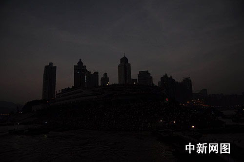 9時(shí)12分左右,食既開(kāi)始,日全食進(jìn)入全食階段。記者在重慶朝天門(mén)碼頭看到,約1分鐘時(shí)間白晝迅速變成黑夜,路上行駛的汽車(chē)紛紛打開(kāi)車(chē)燈減緩車(chē)速,廣場(chǎng)上的路燈也逐次亮起。