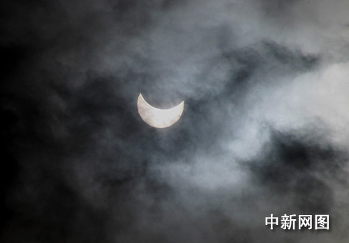 上午9時(shí)許,雨停下來(lái)了,天空烏云密布,幸運(yùn)的揚(yáng)州市民一齊目睹這場(chǎng)“五百年一遇”的天文奇觀。