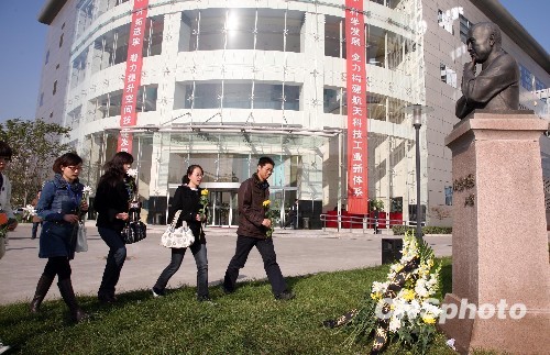 11月3日下午,中國(guó)目前最具實(shí)力的空間技術(shù)及其產(chǎn)品研制基地、人造衛(wèi)星和神舟飛船的“搖籃”——中國(guó)空間技術(shù)研究院在北京航天城舉行儀式,深切緬懷該院老院長(zhǎng)、“中國(guó)航天之父”錢(qián)學(xué)森。正在中國(guó)空間技術(shù)研究院就讀研究生的航天青年學(xué)子們面朝錢(qián)學(xué)森塑像列隊(duì)肅立默哀一分鐘,向錢(qián)老塑像敬獻(xiàn)花籃,隨后依次手持黃、白菊花敬獻(xiàn)錢(qián)老塑像并鞠躬致敬。中新社發(fā) 孫自法 攝