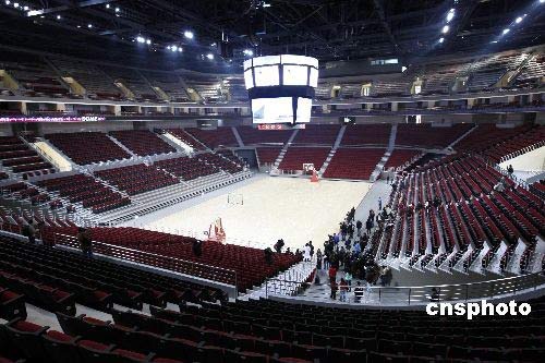 2月19日,北京五棵松2008年北京奧運會籃球館比賽區(qū)。據(jù)工作人員介紹,作為奧運會籃球比賽場館,也是亞洲第一座NBA風格的體育館,這座場館出自休斯敦火箭主場設計師之手,完全按照NBA的設計進行改造。整個體育館內(nèi)共有18700個席位,包括2500個貴賓席、9600個底層座位和48個包廂,座椅的設計都采用NBA式的軟座,看臺上的過道窄而多,這一點與火箭的豐田中心非常相似。比賽期間,場館內(nèi)還設有兩個餐廳以及商鋪,這一點都和NBA的球場無異。不僅場地、座椅是NBA風格的,就連場館包廂前的走廊走向,都與NBA場館非常相似。球場將在4月份迎來“好運北京”的測試賽,這也將是體育館內(nèi)的首次比賽。中新社發(fā) 杜洋 攝