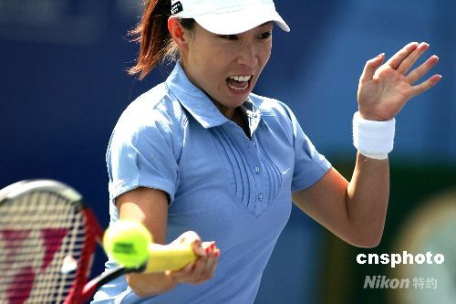 9月25日,2008年中國網(wǎng)球公開賽繼續(xù)進行,女單賽場碩果僅存的中國金花鄭潔僅用時69分鐘就以6-1,6-2橫掃日本老將杉山愛,昂首挺進女單8強。鄭潔很可能在4分之1決賽中與2號種子塞爾維亞美少女伊萬諾維奇狹路相逢。中新社發(fā) 富田 攝