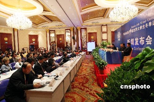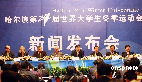 2月17日下午,大冬會(huì)組委會(huì)舉行第一次新聞發(fā)布會(huì),通報(bào)了大冬會(huì)準(zhǔn)備工作的情況。國(guó)際大體聯(lián)主席喬治·基里安,省委常委、常務(wù)副省長(zhǎng)、大冬會(huì)組委會(huì)執(zhí)行主席杜家毫分別答記者問。中新社發(fā) 姚庭山 攝