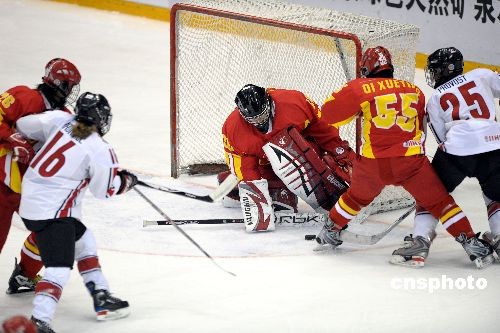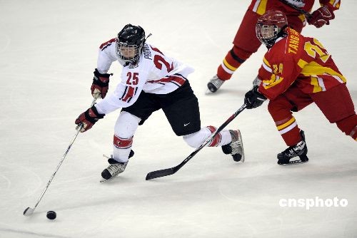 2月27日晚,在哈爾濱冰球館,大冬會女冰中國與加拿大冠軍之爭,中國隊經(jīng)過防守之戰(zhàn)1:3負(fù)于加拿大隊,最終大冬會女冰金牌由加拿大隊獲得。中國隊以獲得銀牌畫上圓滿句號。中新社發(fā) 姚庭山 攝