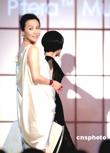 一月十三日,日本女星桃井薰、香港藝人劉嘉玲、琦琦、李心潔共同為某品牌展覽活動(dòng)主持揭幕儀式。中新社發(fā) 張勤 攝