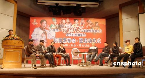 3月7日,“《劉老根大舞臺(tái)》小沈陽(yáng)笑轉(zhuǎn)2009”全國(guó)巡演演笑會(huì)新聞發(fā)布會(huì)暨啟動(dòng)儀式在北京昆侖飯店舉行。據(jù)了解,“《劉老根大舞臺(tái)》小沈陽(yáng)笑轉(zhuǎn)2009”全國(guó)巡演演笑會(huì)自3月6日開始,全國(guó)巡回演出,共106場(chǎng),主要演員全部是趙家班,小沈陽(yáng)表示如沒(méi)有特殊情況,將參加全部演出。中新社發(fā) 龔輝 攝