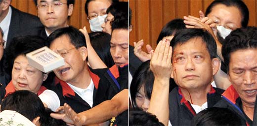 “真的很痛!”吳育升昨日臉上包著紗布,說(shuō)明前天掛彩時(shí),只感覺到一陣刺痛,“當(dāng)時(shí)看到有東西丟過(guò)來(lái),我雖然有閃,但仍砸到我!碑(dāng)下“立法院長(zhǎng)”王金平就站在他左邊,“如果我蹲下轉(zhuǎn)開,是不是就砸到王‘院長(zhǎng)’了?”