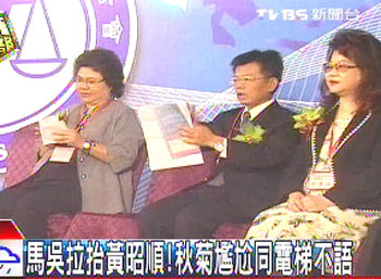 楊秋興表示,高雄縣幅員遼闊,還有許多鄉(xiāng)村部落位于深山,身為大高雄市長必須有能力走遍各地為民眾服務(wù),因此身體健康相形之下更為重要!拔夷艿巧嫌裆,我看她搞不好連柴山都沒辦法爬。”楊秋興自豪地說。