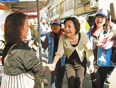 而在選情激烈的臺北市,國民黨候選人郝龍斌的太太高閬仙就與丈夫兵分兩路,高閬仙在“立法院長”王金平陪同下到街市拉票,不過似乎被王金平搶盡風(fēng)頭。
